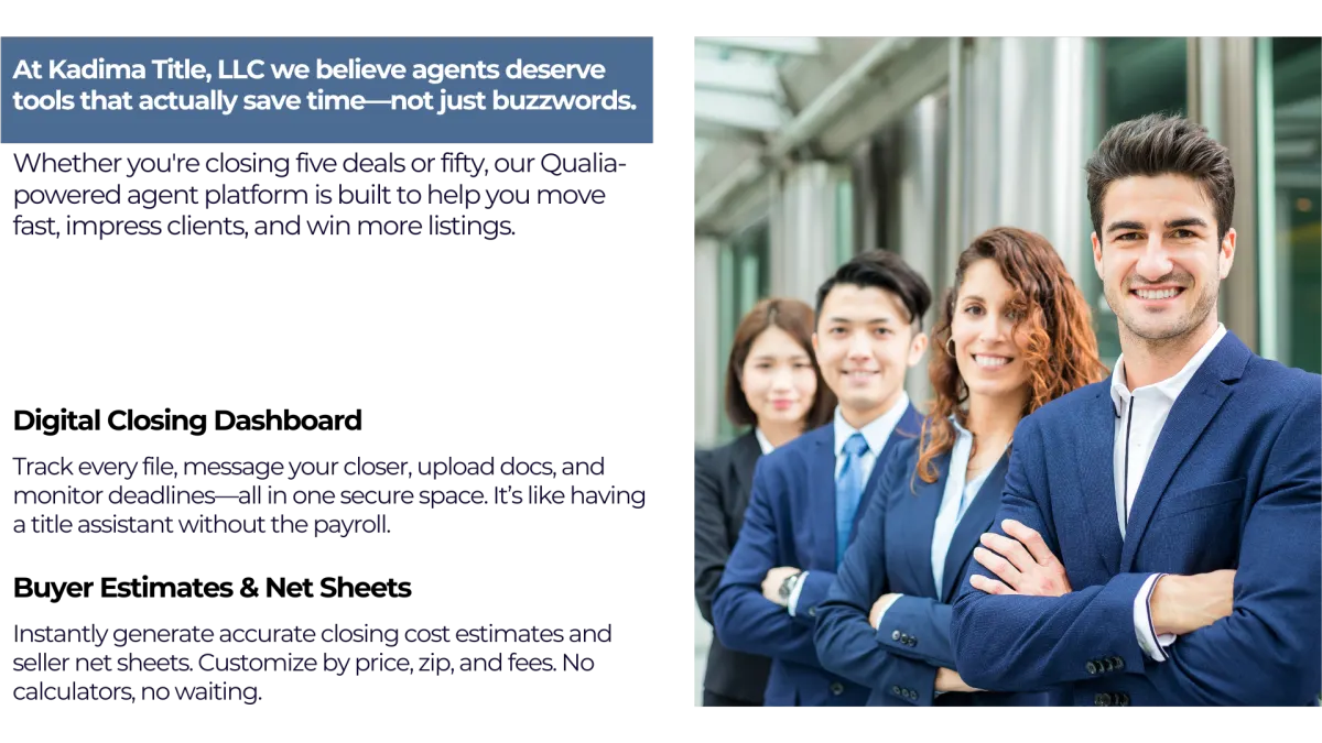 Kadima Title, LLC helps high-performing real estate agents in Florida establish their own title companies. We handle the operations, allowing you to earn passive income by referring clients.